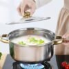 ✔️ Cocina Profesional en Casa Disfruta de una distribución de calor uniforme y rápida, ideal para preparar desde guisos y arroces hasta salsas delicadas — como si tuvieras un chef en tu cocina. ✔️ Material de Alta Calidad Fabricado en acero inoxidable de grado premium, inoxidable y seguro para tu familia. Resistente a golpes, rayones y uso diario intenso.