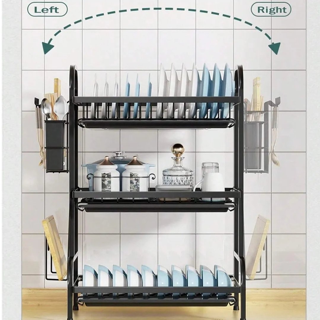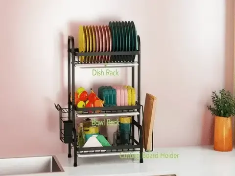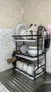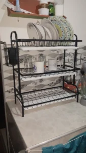 El escurridor de platos de 3 niveles no solo optimiza el espacio, también te ahorra tiempo y esfuerzo en la limpieza diaria. Cada nivel está diseñado para que tus platos y vasos se sequen más rápido y de forma segura, mientras tu cocina se mantiene impecable. No dejes que el desorden te robe comodidad: transforma tu rutina hoy mismo con este práctico y elegante organizador.