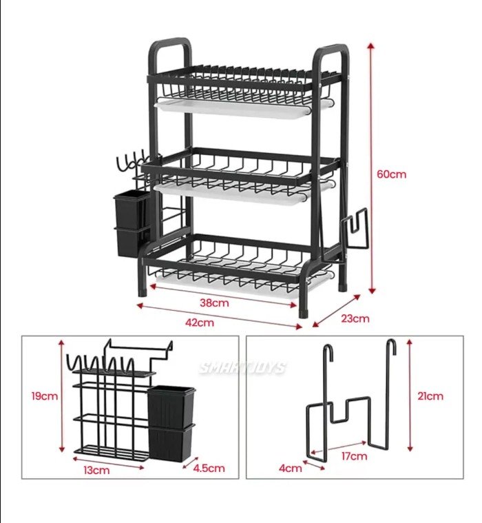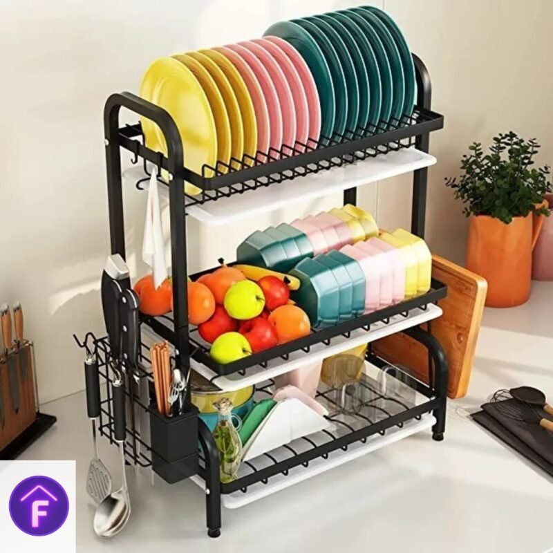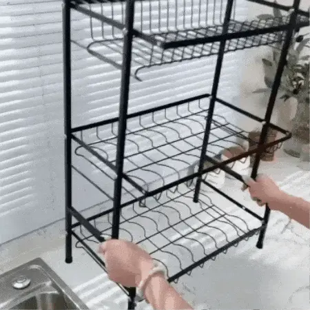 Ahorro de espacio vertical: Organiza vasos, platos y cubiertos en 3 niveles sin saturar tu mesada. Drenaje eficiente y bandejas removibles: El agua sobrante va directo al plato recolector, evitando charcos y manteniendo tu encimera limpia.