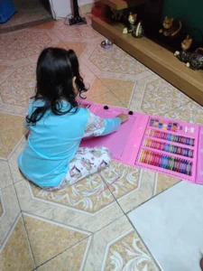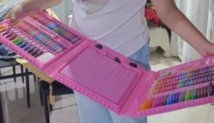 Convierte cada momento en una experiencia llena de color e imaginación con nuestro Set de Arte para Niños de 208 piezas, el kit más completo y divertido para inspirar la creatividad desde casa. Incluye todo lo que tus pequeños necesitan para explorar el mundo del arte: crayones, plumones, lápices de colores, acuarelas, pinceles, regla, goma de borrar, sacapuntas y hojas de dibujo, todo perfectamente organizado en una práctica maleta portátil y resistente. Ideal para acompañar sus actividades escolares, proyectos artísticos o simplemente disfrutar de tardes creativas en familia.