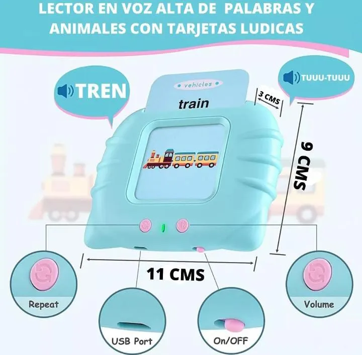 Me sorprendió lo rápido que avanzó mi hija en vocabulario. Las tarjetas son coloridas y el dispositivo muy intuitivo. Un recurso educativo que vale cada peso.