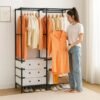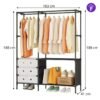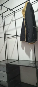 Tipo: Closet Perchero de 2 cuerpos Color: Negro Material principal: metal tubular y conectores reforzados / tela no tejida (según modelo) Uso ideal: Dormitorio, vestidor, entrada, cuarto de lavado Diseño: Estructura estable para colgar y almacenar prendas, bolsos y accesorios